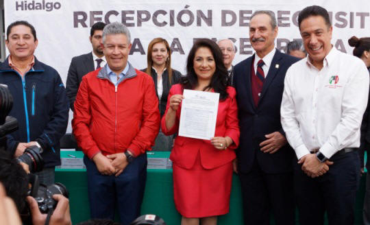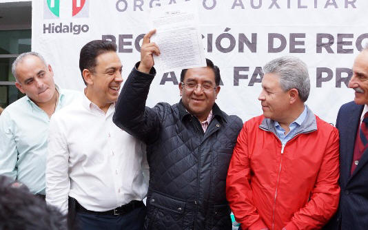Se registraron aspirantes del PRI Hidalgo a precandidatos para diputados federales Pachuca, Hgo., a 7 de enero del 2015.- El Órgano Auxiliar Estatal de la Comisión Nacional de Procesos Internos del Partido Revolucionario Institucional, que preside José Gonzalo Badillo Ortiz, que inició sesión a las 9:55 horas; recepcionó la documentación de los aspirantes a diputados federales por el principio de mayoría relativa por los distritos III –Actopan-, V –Tula-, VI –Pachuca- y VII –Tepeapulco-, en la sede estatal de este instituto político. Para tal efecto, los integrantes de este órgano colegiado: César Jiménez Ortiz, secretario técnico, así como los vocales: Cristina Cortés Montaño, Vanessa Maldonado Quezada y Rodolfo Hinojosa Fernández, recibieron de manos de la aspirante por el Distrito VII con cabecera en Tepeapulco, María Gloria Hernández Madrid la totalidad de los requisitos emitidos en la correspondiente convocatoria que fue publicada por el Comité Ejecutivo Nacional del PRI.