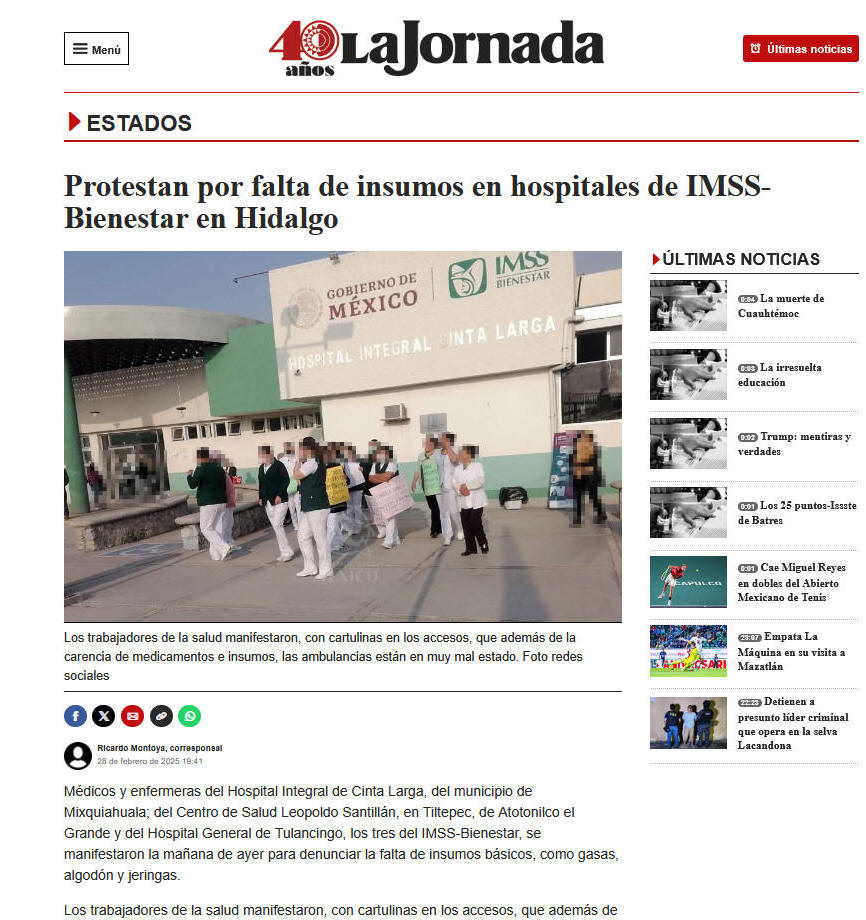 La inmensa mayoría de los Hospitales públicos, son una miserable consecuencia de la infinita estupidez el pejeogt y sus aplaudidores babeantes. No hay un solo caso así en el mundo entero, ¡Aleluya! ** Nuestro mayor criminal de fama internacional merecida, sin duda, tiene contra la pader a los socios beneficiados por el incomparable mayo zambada, junto con sus colegas profesionales, ahora huéspedes predilectos fe la justicia gringa, donde cantan a coro, cómo reparten las ganancias de sus empresas criminales: no se salva nadien… comenzando por los ahora elegidos por la señito Claidia SSePa, a la pobre ya no la calienta ni el sol palenquero.