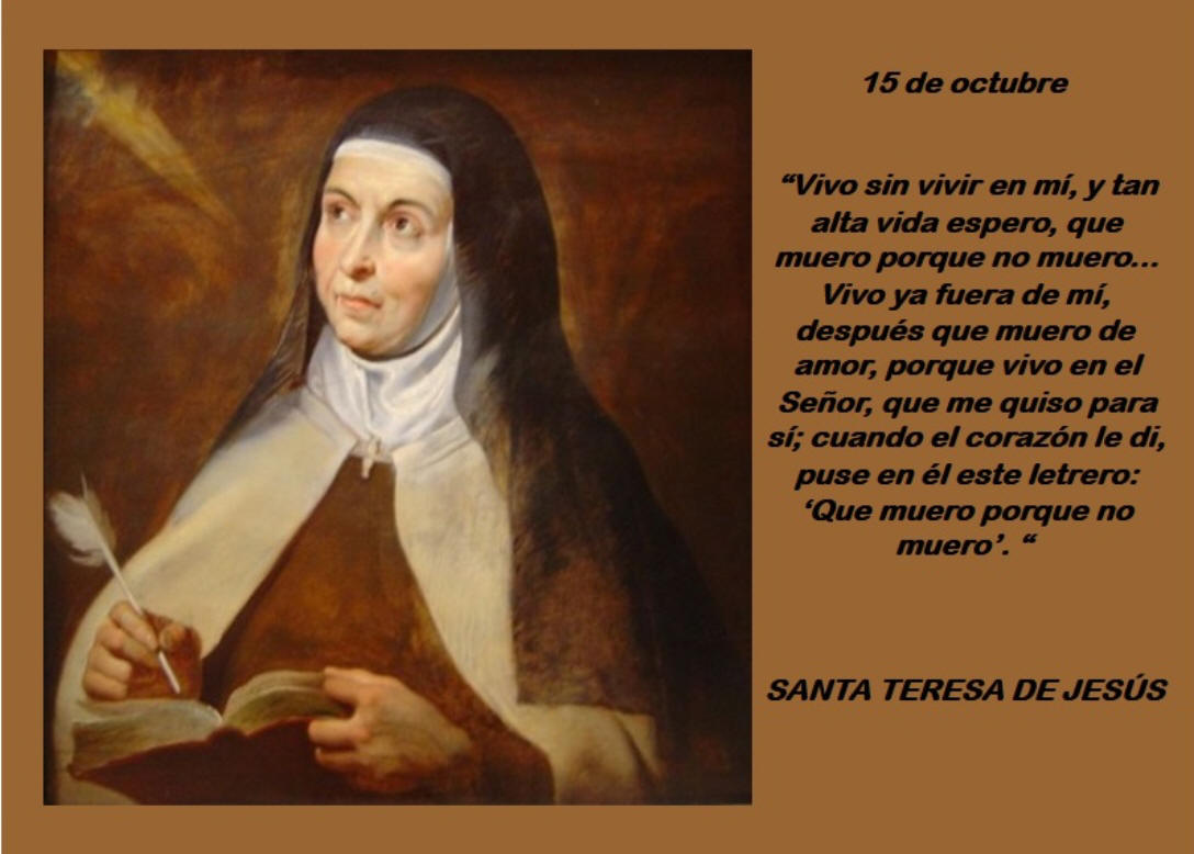 …vivo sin vivir en mí y tan alta vida espero que muero porque no muero, vIvo ya fuera de mí después que muera de amor, porque vivo en el Señor que me quiso para sí cuando el corazón le di puso en él este letrero que muero porque no muero… **